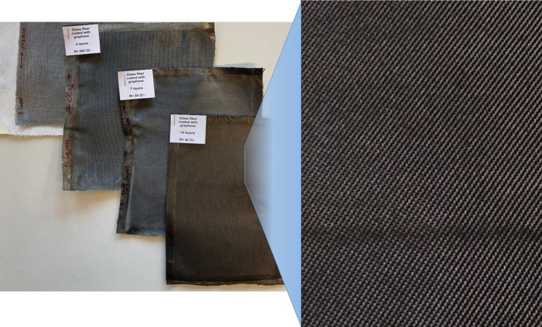 “We have validated this approach by coating more than 20 types, dimensions and weaving geometries of glass fibres, controlling precisely the coating uniformity and electrical conductivity. By changing the thickness of the flakes' coating on each individual fibre, we are able to adjust precisely the sheet resistance of the glass fibre fabric, from 1 MOhm/sq to 10 Ohm/sq,” says Grafren’s CTO Mike Zhybak.