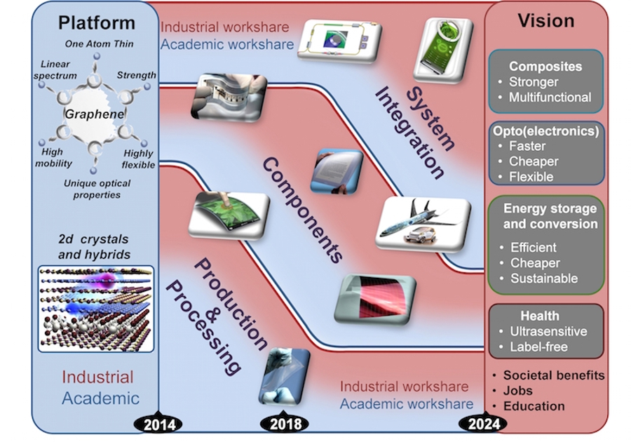 Further reading: Ferrari et al, Science and technology roadmap for graphene, related two-dimensional crystals and hybrid systems, Nanoscale 7, 4598 (2015). DOI: 10.1039/C4NR01600A.